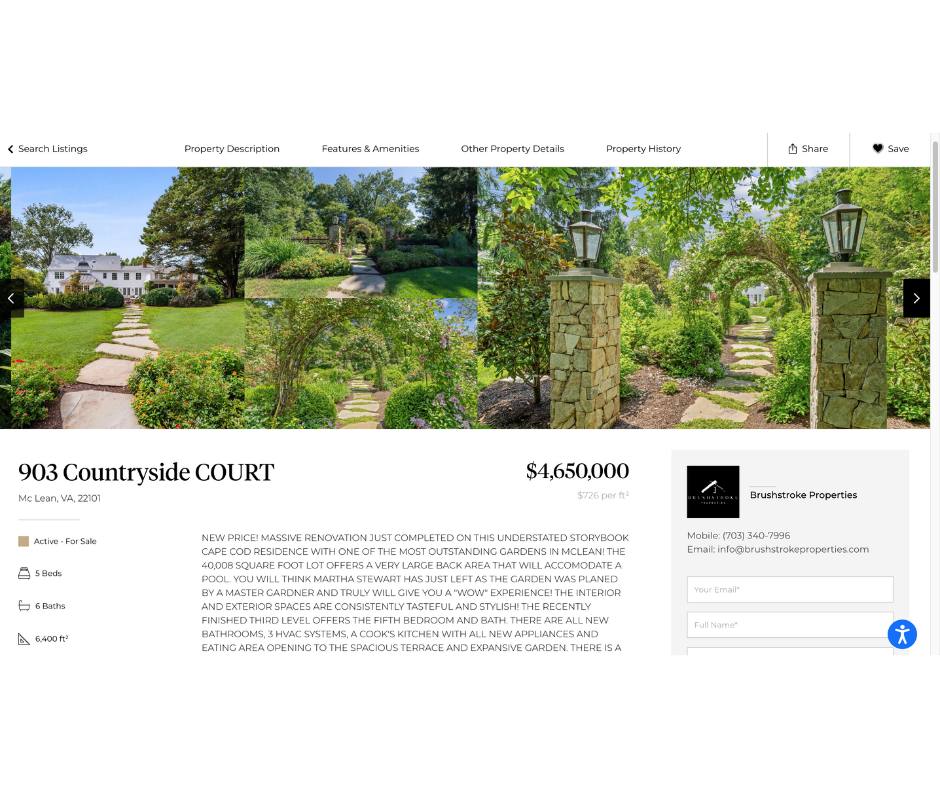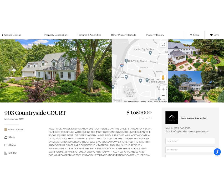 - Using the Tool to Explore Neighborhoods: Brushstroke Properties’ home search tool isn’t just about homes; it’s a window into the varied neighborhoods in McLean. You can explore different areas, each with its own charm and character. The map in the tool provides a quick view of local amenities, nearby schools, restaurants, parks, and more.